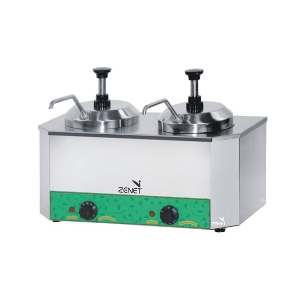 The ZENET double chocolate warmer and dispenser keeps your melted chocolate warm dispenses it through a manual pump dispenser